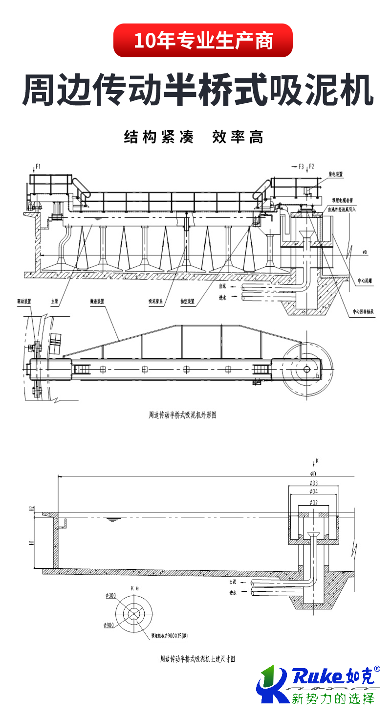 周邊傳動半橋式吸泥機