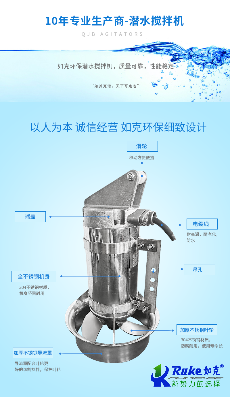 江蘇如克(www.www.yongkang.net.cn)是一家主營推流曝氣機,潛水攪拌機,噴泉式曝氣機,干式攪拌機,吸沫機,餐廚垃圾處理設備等環保設備的廠家,我們的產品價格優惠,型號全,服務好,歡迎洽談合作!